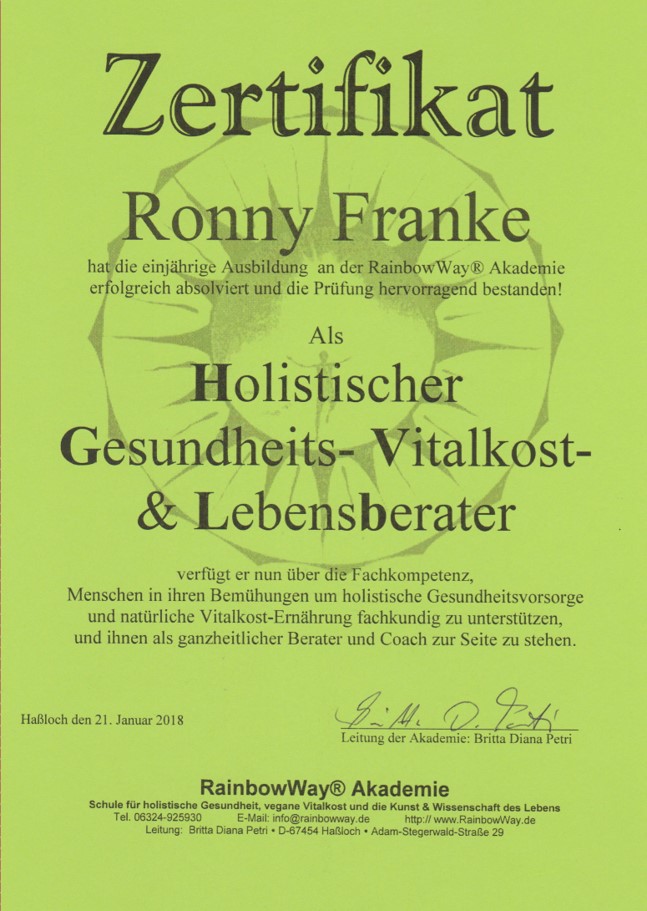 Ronny Franke – Holistischer Gesundheits- Vitalkost- und Lebensberater
